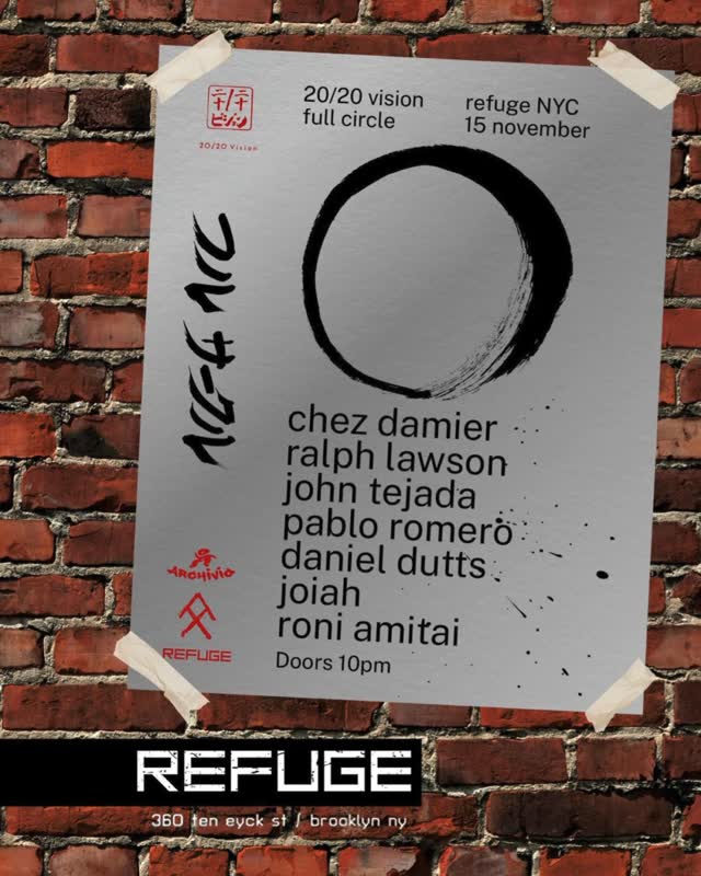 Iconic UK record label 20/20 Vision presents Full Circle: celebrating 30 years of genre defining music at NYC’s new audiophile club Refuge on November 15th, with a lineup featuring legendary artists, coupled with future stars taking on the custom 4 point sound system known at “Rex”.Label boss Ralph Lawson showcases the signature 2020 Vision sound, alongside house music pioneer Chez Damier, boundary pushing artist John Tejada, Archivio Records owners Pablo Romero and Daniel Dutts, plus support from rising talents Joiah and Roni Amitai.