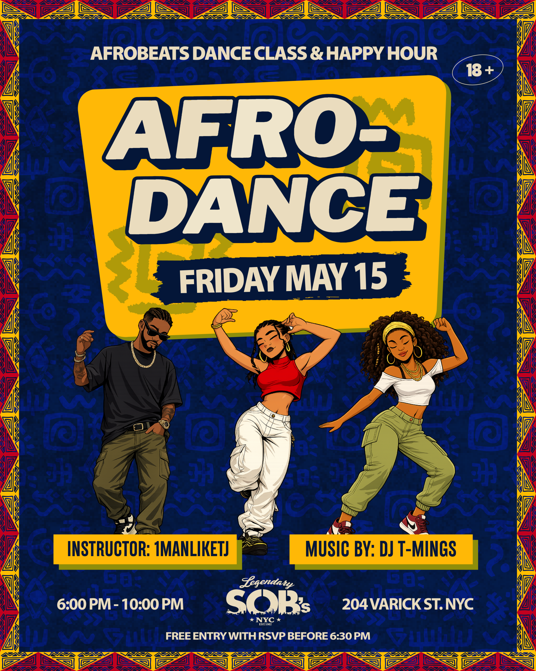 Welcome to Afro-Dance: a fan-favorite night in New York City with afrobeats dance classes, happy hour, dinner & drinks, and live DJs spinning afrobeats, amapiano, & more.