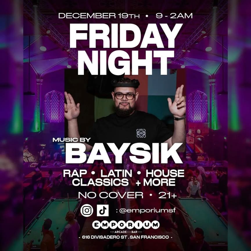 Straight from the Mission, DJ Baysik is one of the city’s most requested DJs. It’s a party.
