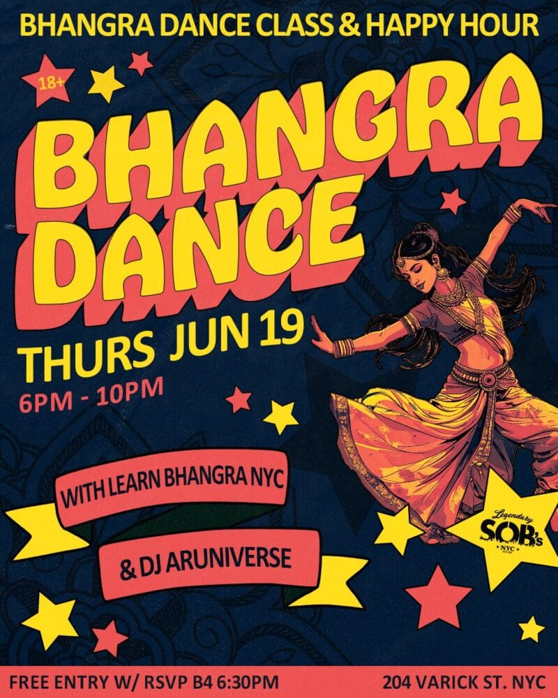 For over 40 years, SOB’s has been widely known as the premier venue for Bhangra, Bollywood, and Desi music in New York City. With alumni like Malkit Singh, M.I.A. Bally Sagoo, DJ Kratex, and more, SOB’s has remained the home of South Asian music in NYC, with early bhangra dance classes and late-night desi parties.