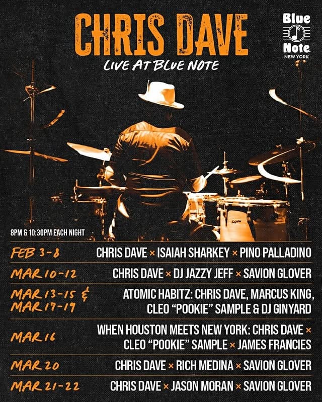 There’s a good chance you’ve heard Chris Dave play drums, even if you didn’t know it was him. Over the last 20 years, the Houston-born percussionist, bandleader, and producer has played with some of the most revered names in jazz and R&B, offering his unique drumming style to songs by D’Angelo, Justin Bieber,The Robert Glasper Experiment, and Adele. The Roots’s bandleader Ahmir Questlove Thompson once called Dave “the most dangerous drummer alive,” a characterization that Dave playfully dismisses. “I don’t believe that at all,” he deadpanned during a recent interview. Maybe that’s why he endures: He lets the work speak for itself. And his music is so resonant that it does just that.