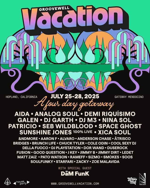 This is GrooveWell Vacation — a four-day getaway into a sonic wonderland nestled in the heart of Hopland, CA. Featuring a world-class lineup of eclectic dance music, we showcase the deep and groovier side of House, Disco, Techno, Breaks, Electro, and beyond in an intimate boutique setting.