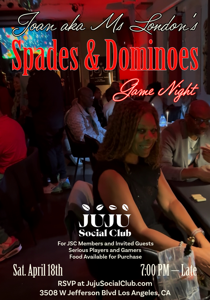 It’s a Juju SC members + guest night only, so you already know it’s family vibes. Bring your partner or find one at the table. Whether you’re talking smack or just soaking up the soulful energy, it’s all part of the magic.