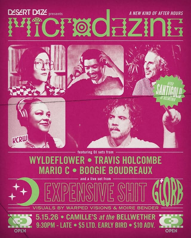 More Info Microdazing with Wyldeflower, Travis Holcombe, Mario C, Boogie Boudreaux @ The Bellwether Friday May 15, 2026 09:30 PM - 2:00 am TICKETS 21+ Cover: TBD From: To: