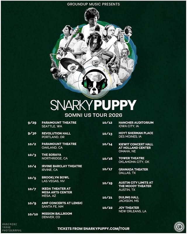 Over the years, Snarky Puppy’s sound has expanded dramatically, evolving from a jazz-forward foundation into something groovier, more emotional, and powerfully communicative. The result is music that connects instantly and deeply, without compromise.