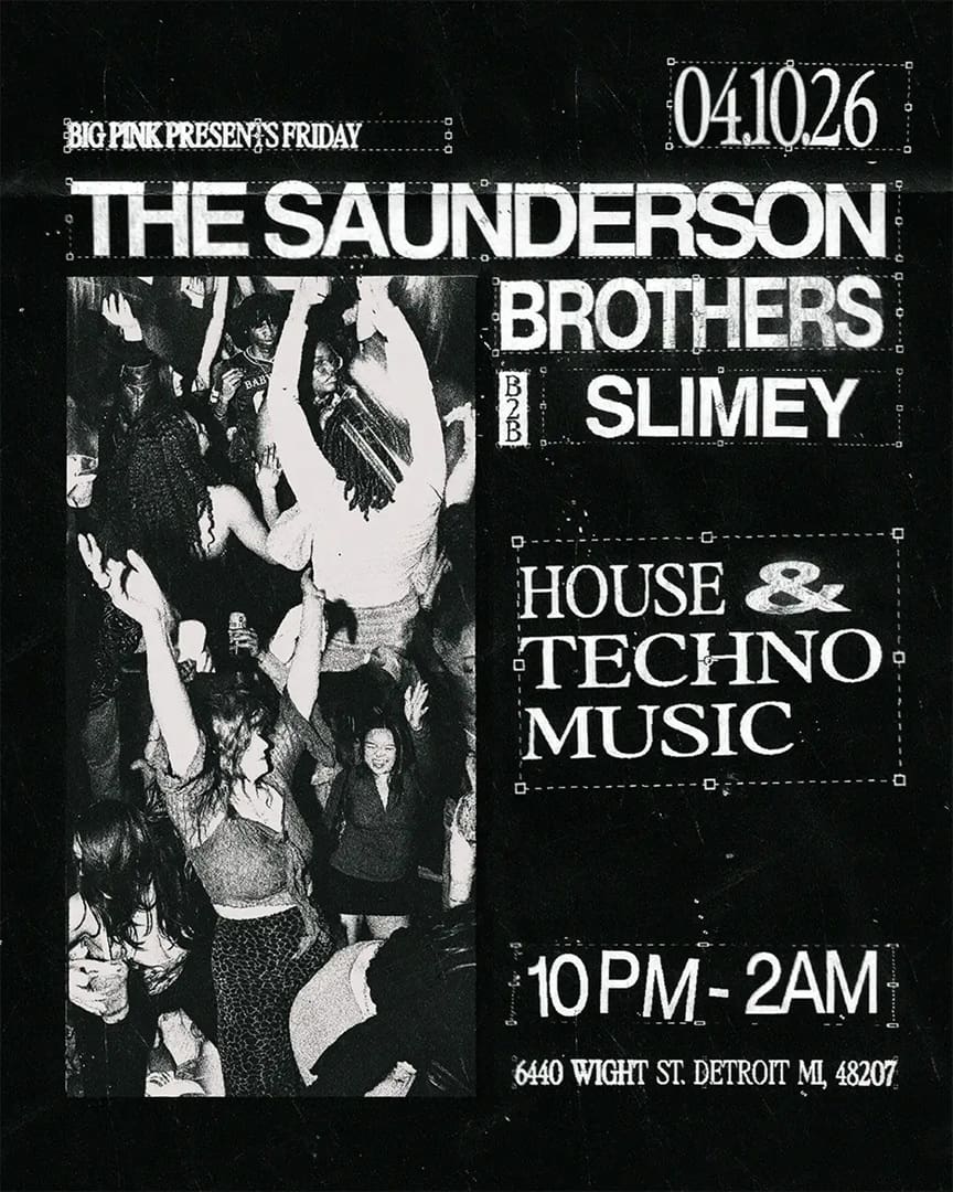 House & Techno are back at Big Pink! Join us as we welcome back our favorite brothers! The Saunderson Brothers play b2b Slimey all night so expect high energy bangers all night long. Doors open at 10PM, tell a friend to tell a friend because this one’s gonna be fun. The first 600 tickets are completely FREE to activate the groupchat, lock in your plans and we’ll see you on the dance floor!