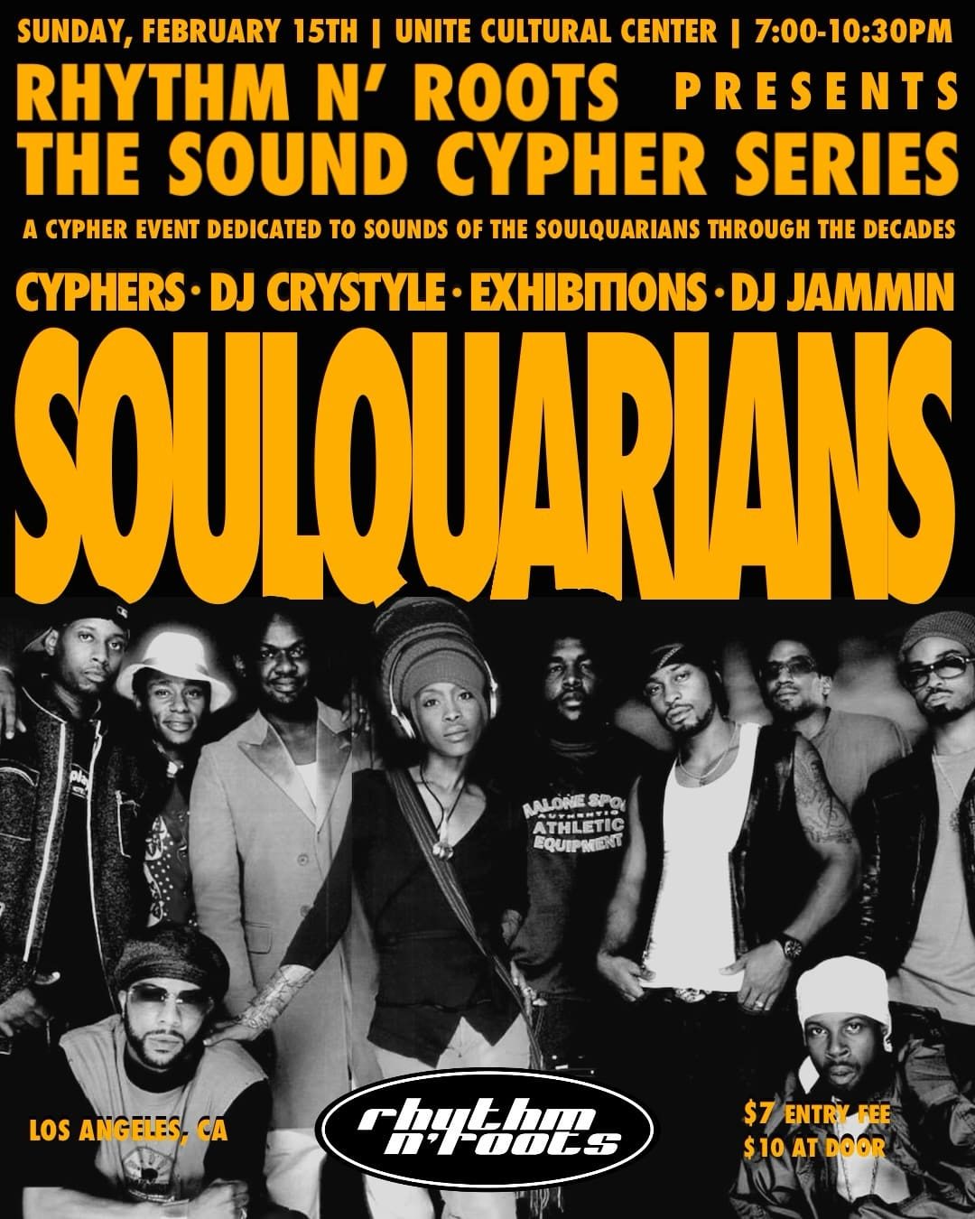 This month: The Sound Cypher Series : Soulquarians! A movement cypher event dedicated to the sounds of The Soulquarians together and individually throughout the decades! All Soulquarians and Soulquarian inspired sounds all Night! Cyphers, Exhibitions, and good vibes. ( You do NOT need to be a dancer to come and enjoy the vibes)