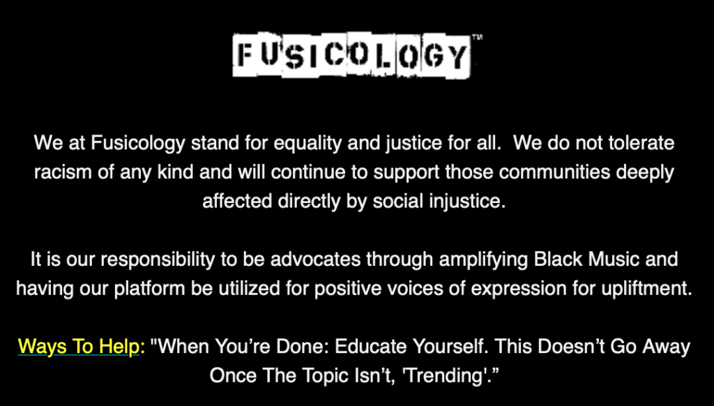Fusicology Statement #BlackLivesMatter Previous Post New Releases week of June 1, 2020 Next Post Fusicology's Best of | Spotify Stream